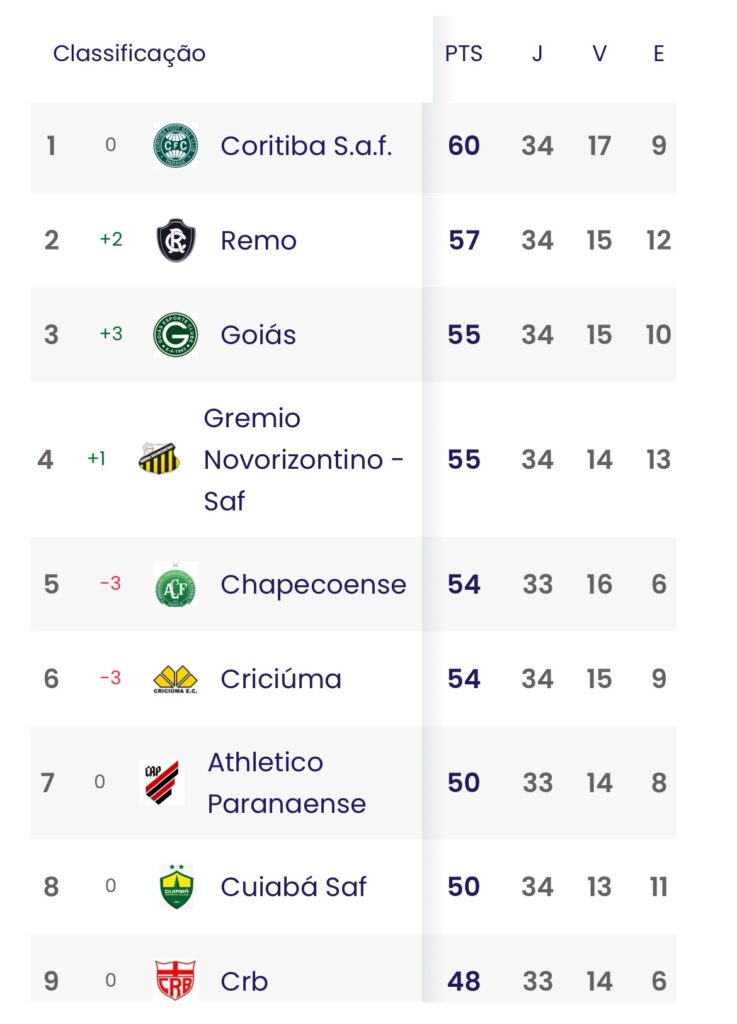 O resultado tem peso duplo: além de quebrar o tabu, recoloca o Goiás no G4 da Série B do Brasileirão, agora ocupando a 3ª posição, com 55 pontos. O Criciúma, que começou a rodada no grupo de acesso, caiu para o 6º lugar, com 54 pontos.